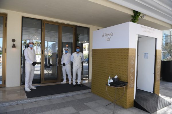 وخلال الجولة قام وزير السياحة والآثار بتفقد الإجراءات الوقائية التي تتبعها تلك الفنادق منذ دخول الضيف من باب الفندق وإجراءات تطهير الأمتعة وقياس درجات حرارة الضيوف وتطهير اليدين، ومنطقة الاستقبال والبهو وإجراءات التسكين ومنطقة المطاعم والمطابخ والبرجولات، وحمامات السباحة، والممرات الداخلية ومنطقة الشاطئ،و العيادات الطبية الموجودة بهذه الفنادق وطرق تجهيزها والطاقم الطبي الموجود بها.