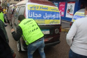 وقال دياب بان المبادرة لمساعدة جميع الأهالي لمن يريد الذهاب إلى أي مكان داخل المدينة مجانا دون أي مقابل، ويقوم عليها مجموعه من الشباب المتطوعين، باتخاذ الإجراءات الاحترازية لكل من يستقل سيارات الإغاثة المتنقلة التي تقوم بنقل السيدات والأطفال والطلاب الذاهبين إلى دروسهم أو العائدين وكبار السن واي مواطن يرغب في استقلال السيارة حماية له من الأمطار والبرد القارس.