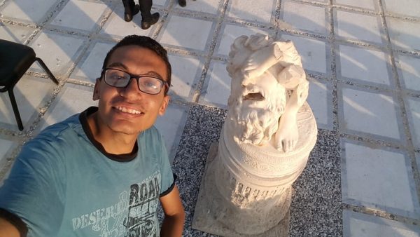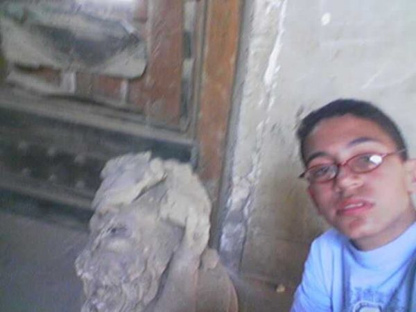 ودخلت وشاهدت مدفأة، ثم دخلت وشاهدت تمثالاً عند السلم ولقد تم ترميمه بشكل عظيم في واجهة القصر،وعندما صعدت إلى الغرف شاهدت بقايا الدم وكان عمري في ذلك الوقت 14 عاما،وقد قمت بذلك لأنني محب وعاشق لحضارة مصر وتراثها العظيم.
