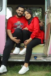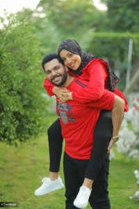 احتفال العروسين بنادي القرن ، ظهر ا من خلال حرصهما في التقاط جلسة تصوير بالتيشرت الاحمر ، الذي ارتدياه خصيصا للتاكيد علي أن اذان كان الجميع يتحاكي بقصة حبهما ، فان عشق الاهلي لاينسي ، حيث ظهر أسامة عوني وعروسة الاء محمد ذكريا في أكثر من صورة بالتيشرت الأحمر .
