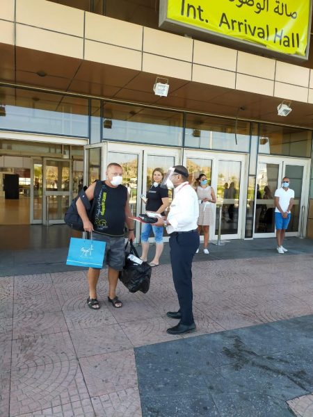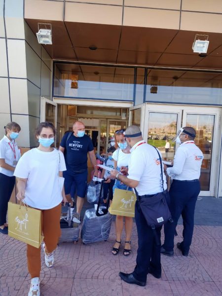 وكان فى استقبال الوفد فى مدينة الغردقة مع اللواء عمر حنفي محافظ الغردقة، واللواء عادل محجوب رئيس الشركة المصرية للمطارات، المهندس أحمد يوسف رئيس الهيئة المصرية العامة للتنشيط السياحى والذى رافقهم للفندق محل الإقامة للإطمئنان على اجراءات التسكين والإقامة الخاصة بهم والتأكد من تطبيق كافة ضوابط السلامة الصحية والاجراءات الاحترازية والاشتراطات الوقائية التى أقرتها وزارة السياحة والآثار واعتمدها مجلس الوزراء.