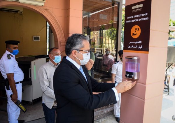 وخلال هذه الزيارة، قام وزير السياحة والآثار بجولة داخل المتحف تفقد خلالها تطبيق ضوابط السلامة الصحية والإجراءات الاحترازية التي أصدرتها الوزارة لإعادة الفتح التدريجي لمجموعة من المتاحف والمواقع الأثرية ضمن استئناف الحركة السياحية الوافدة إلى مصر.