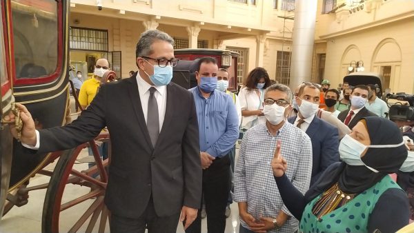 تفقد الدكتور خالد العناني وزير السياحة والآثار، اليوم، متحف المركبات الملكية ببولاق، حيث يقوم بجولة للوقوف على مستجدات أعمال مشروع ترميم المتحف،بحضور الدكتور مصطفي وزيري الأمين العام للمجلس الأعلى للآثار.