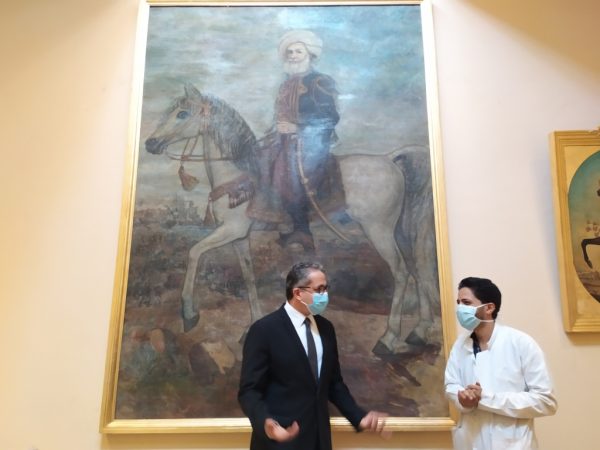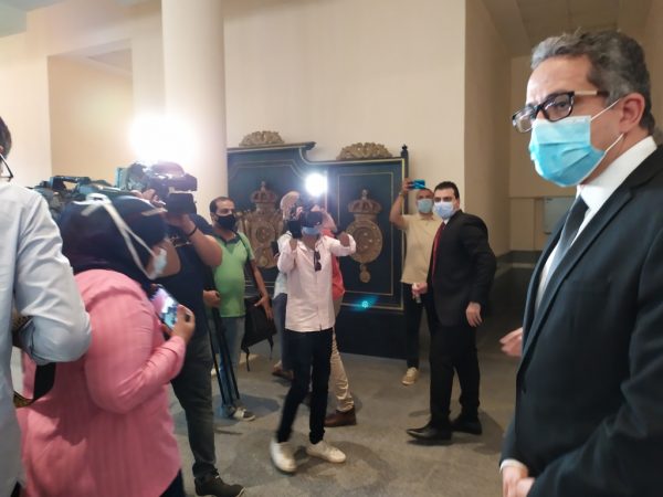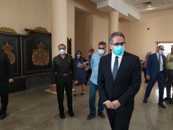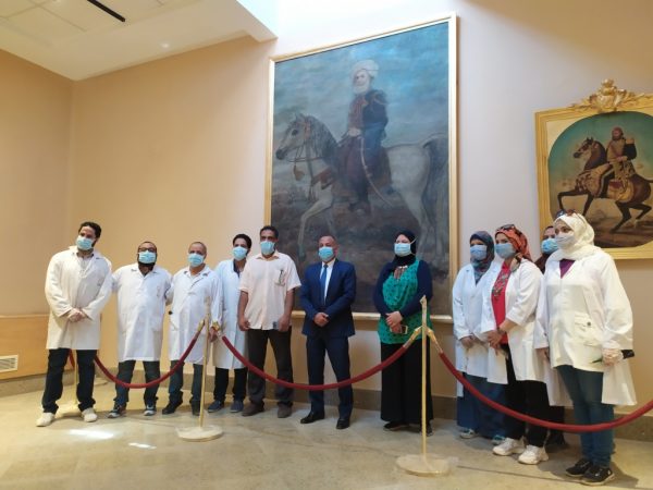 رافق الوزير خلال الجولة الدكتور مصطفى وزيري الأمين العام للمجلس الأعلى للآثار، ومؤمن عثمان رئيس قطاع المتاحف، والعميد هشام سمير مساعد الوزير للشئون الهندسية والمشرف على القاهرة التاريخية، واحمد عبيد مساعد الوزير لشئون قطاع مكتب الوزير، ويمنى البحار مساعد الوزير للشئون الفنية، والدكتورة نيڤين نزار معاون الوزير لشئون العرض المتحفي.