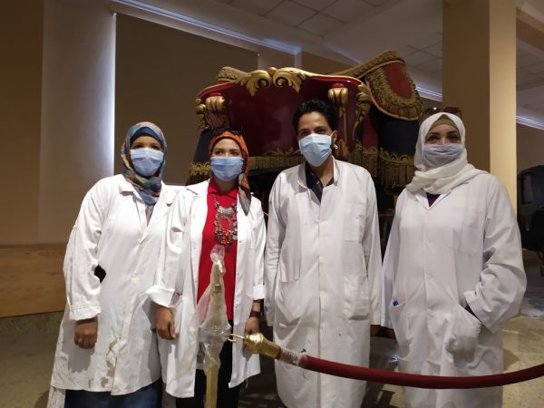 الفريق يضم كل من محمد حسام وحسام سلطان ومحمد بسيوني وأحمد سمير وسوزان إمام وإيمان ربيع وهبة جلال وعلى هنيدى،وقد امتزجت كفاءتهم مع حسن القيادة للدكتورة إيمان رئيسة الفريق،فجاء الترميم عالي المستوي،وهو ما رصدته كاميرا موقع الحدث 24.