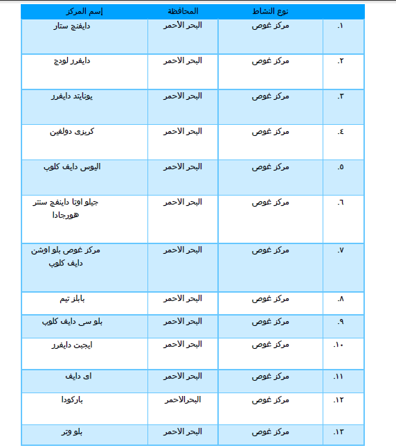 لمحبي الغوص والغواصين .. أسماء وعناوين 74مركز غوص وأنشطة بحرية أمنة صحيا