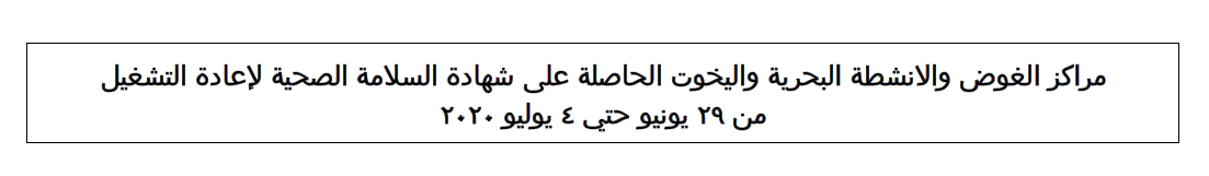 وتهيب وزارة السياحة والاثار بالمواطنين وشركات السياحة قصر التعامل مع المراكز واليخوت التي حصلت علي شهادة السلامة الصحية دون غيرها.