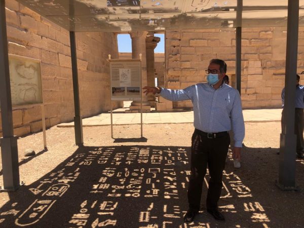 للتأكد من  تطبيق السلامة الصحية قام الدكتور خالد العناني وزير السياحة والآثار اليوم الثلاثاء بتفقد معبد فيلة بأسوان والذي