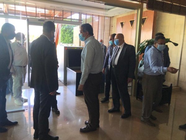 حيث قام الوزير بتفقد الإجراءات الوقائية التي يتبعها الفندق منذ دخول الضيف من باب الفندق وإجراءات تطهير الأمتعة وقياس