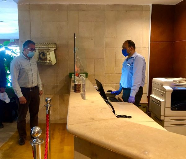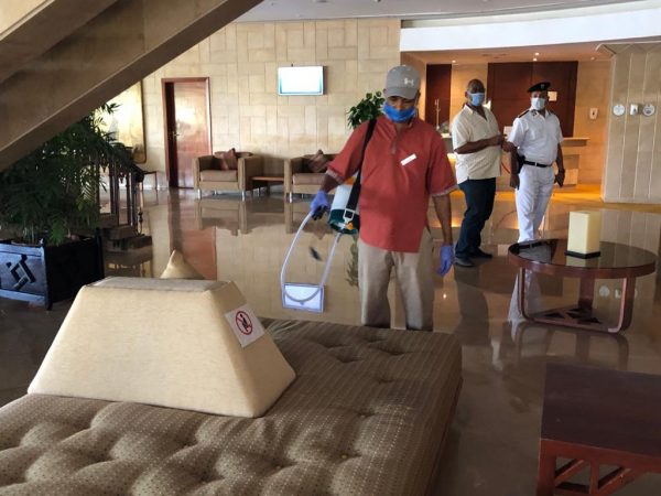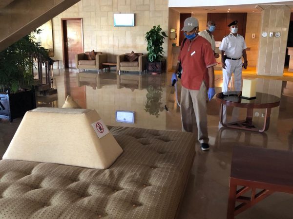 درجات حرارة الضيوف وتطهير اليدين، ومنطقة الاستقبال والبهو وإجراءات التسكين ومنطقة المطاعم والمطابخ والبرجولات