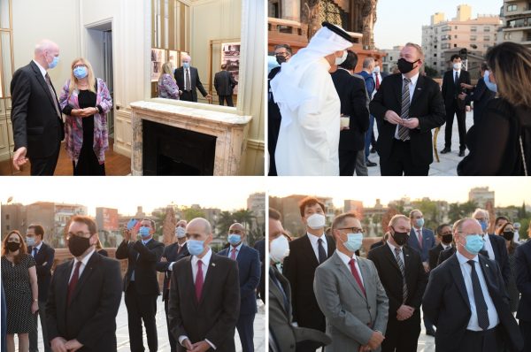 وقد سبق حفل العشاء قيام السفراء بجولة داخل القصر تم خلالها تفقد اعمال الترميم والمعرض المقام داخل حجراته وما يزخر به من لوحات وخرائط وصور تحكي تاريخ هذا القصر العريق و حي هيليوبوليس ومصر الجديدة٫ حيث استمعوا الى شرح تفصيلي من الدكتور مصطفى وزيري.