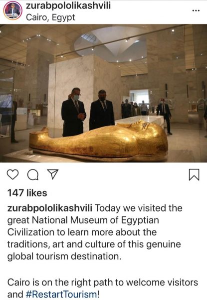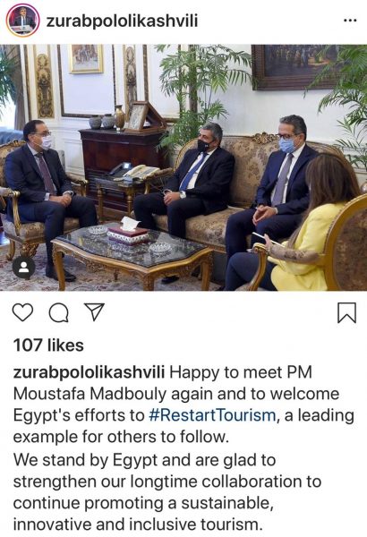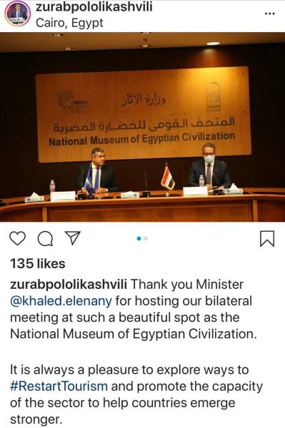 حرص زوراب بولوليكاشفيلى الأمين العام لمنظمة السياحة العالمية، على تسجيل فعاليات زيارته الرسمية لمصر على مدار الثلاثة أيام الماضية، على منصات التواصل الاجتماعي الخاصة به.